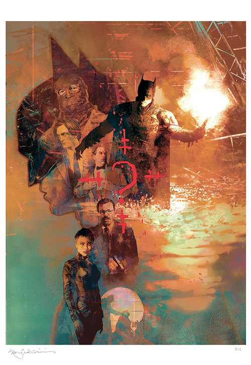 唯一無二な革新的なアートで知られるアメコミ界の巨匠の一人でアイズナー賞受賞アーティストであるビル・シンケビッチ。マーベルコミックで『ニューミュータンツ』のアートを担当し一コミックの枠を優に飛び越え、コミック界に新たな可能性を見せつけたビル・シンケビッチがサイドショウとタッグを組み作り上げた映画『THE BATMAN-ザ・バットマン-』のアートプリント。劇中様々に交差する人間模様を描き出した魅力的な一枚。貴重な限定数150枚というアートプリントには、ビル・シンケビッチのハンドサインも入ったスペシャルなアイテムです。