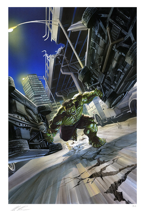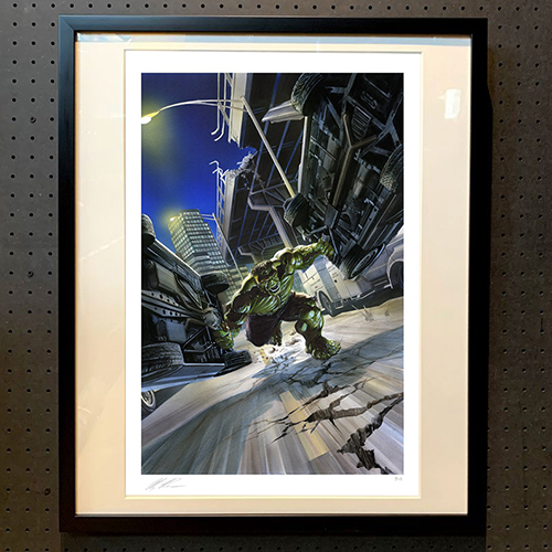 『マーベルズ』をはじめ数々のコミックスやカバーアートで世界中の多くのファンを美麗かつ息を呑む写実的なアートで魅了してきた世界的なコミックアーティスト、アレックス・ロス。そんなアレックス・ロスが描き出してきたアートをサイドショウの手でアートプリント化。こちらは2018年の『The Immortal Hulk #4』のカバーとして描かれた荒れ狂うハルクの姿。その形相からも見て取れる溢れる怒りを胸に行く手を阻む車を蹴散らし我が道を行くハルク。貴重な限定数200枚というアートプリントには、アレックス・ロスのハンドサインも入ったスペシャルなアイテムです。