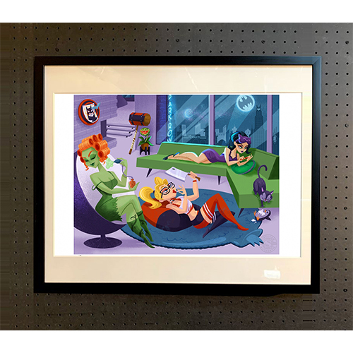 これまで幾多の立体物を世に放つため、膨大なコンセプトアートを見極めてきた米国コレクティブルメーカーのサイドショウが、個性豊かなアーティストたちとコラボレーションし生み出された珠玉のアートプリントたち。海外と国内の用紙サイズの違いにより、中々アートプリントがピタッと収まるフレームが見つからない…。そんな長年の悩みに終止符を打つべく、豆魚雷独自で開発したでサイドショウのアートプリントを楽々飾れるフレームに、カット・ハドソンが描いたキャットウーマン、ハーレイ・クイン、ポイズンアイヴィーの3人娘、通称「セイレーンズ」のバットサーチが照らされたゴッサムの街並みが騒がしくても、のんびりリラックスモードなアートプリントをセットしお届け!