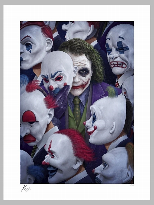 アーティストのケヴィン・マクギヴァン氏により描かれた、クリストファー・ノーラン監督の『ダークナイト』(2008年)にリスペクトを捧げるジョーカーのイラストがサイドショウによってアートプリントになりました。スーツ姿のピエロマスクを付けた群衆の中に佇むジョーカー。まっすぐこちらを見つめてくるその姿にゾクゾクします。『ダークナイト』ファンにとってもたまらないアートです!