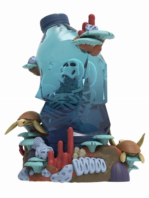 モノトーンで描かれる緻密で幻想的、そして自然界からも大きなインスピレーションを受ける作品を生み出すカービィー・ロザネス。世界各国から注目を集めるアーティストという側面だけではなく、環境問題にも積極的に警鐘を鳴らす彼がマイティージャックスと共に生み出した作品がコチラです。海洋汚染の影響を、古来からのボトルメッセージという形で表現したスタチューです。ボトル自体が環境に影響をもたらしてしまうのか。自然界からのイメージソースを強く持つ彼らしい、メッセージ性の強いアイテムとなりました。