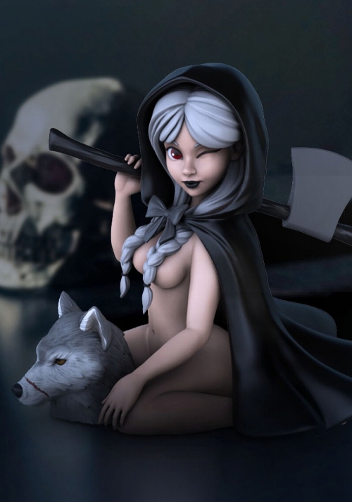 様々なデザイナーズフィギュアやアート作品を手掛け、さらにオリジナルにも力を入れるマイティージャックス。その中で培った審美眼から、オリジナルアートトイとして作り上げたのが「ザ・ハントレス」。某おとぎの国のキャラクターっぽいファンタジックさと、相対するセクシーさが共存するアーティスティックなスタチューとして完成しました。今回はバリアントバージョンとして、死神リーパーからインスパイアされ赤い頭巾からダークな印象のカラーへ大胆に変更。途端に漂うダークファンタジー感が興味をそそりますが、近づいたら…わたしは、知りません。