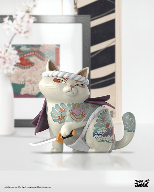 様々なデザイナーズフィギュアやアート作品を手掛ける中で培った審美眼でマイティージャックスのオリジナルアートトイ。一部で大きな話題を呼んだニャクザが、「UKIYO-E」エディションとなって再びスタチューとして登場です。日本の主要都市のレストラン、バー、トラック運送会社、タレント事務所、タクシー会社、工場など、多くの企業を支配している日本で最も恐ろしいニャクザ(という設定)。今回は浮世絵をイメージしたホワイトベース。しかも刺青のデザインもイメージに合わせて変更されていて、ついつい2体揃えてしまいたくなる絶妙な可愛さになっています!