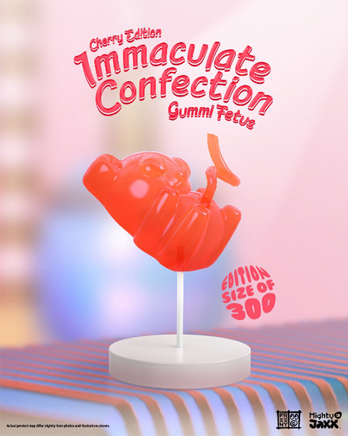 様々なデザイナーズフィギュアメーカーともコラボを行い、XXRAYシリーズを始め、キャラクターのアナトミーフィギュア(人体解剖図的フィギュア)の第一人者として知られるデザイナー、ジェイソン・フリーニー。彼が手掛けた作品のひとつグミフィータス。その名の通り"グミの胎児"として胎児模型をグミで再現するというエッヂの利いたデザインで人気を博すアートスタチュー。今回はアメリカンチェリー感のあるカラーが印象的なチェリーエディション。全世界300個限定。