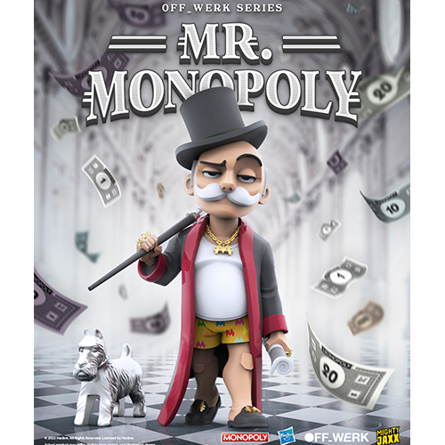 様々なデザイナーズフィギュアやアート作品を手掛けるマイティージャックスの放つオリジナルシリーズ「OFF_WERK」。古くからアメリカをはじめ世界各国で愛されてきた自らの資産を増やしていくボードゲーム、モノポリー。そのキャラクターとして多くの方が目にした事があるであろうタキシード姿のミスター・モノポリー。なんとそのミスター・モノポリーの裏側(休日)を表現したのが、このアートスタチュー。なんとオフィシャルアイテムという事に驚きな遊び心溢れるアイテムです。