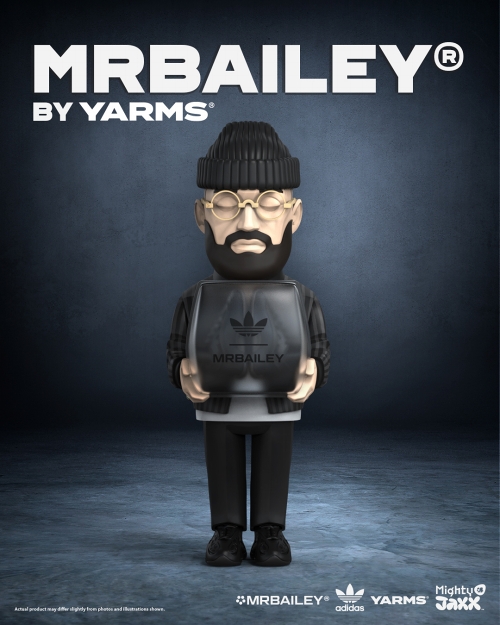 クリエイティブスタジオ「YARMS」の創始者であるダニール・ヤッドが具現化した、マイティージャックスのアートフィギュアたち。アディダスのハイカテゴリーである「adidas Originals」でデザイナーとして活躍する、「Mr.ベイリー」ことダニエル・ベイリーをフィギュア化しました。自らがデザインしたモデル「OZLUCENT/オズルーセント」を履いたMr.ベイリーを、ニットキャップ、メガネ、ヒゲまでYARMSらしいアレンジで仕上げました。手に持っている半透明のシューズボックスは、オフィシャルパートナーのアディダスのロゴ入り!