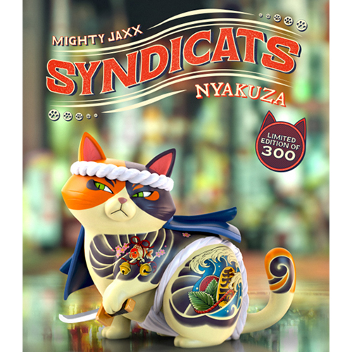 様々なデザイナーズフィギュアやアート作品を手掛ける中で培った審美眼でマイティージャックスのオリジナルアートトイとして放たれるニャクザスタチュー。日本で最も恐ろしいニャクザを経営するため、日本の主要都市のレストラン、バー、トラック運送会社、タレント事務所、タクシー会社、工場など、多くの企業を支配している設定だそうで、逆らう者は昼まであっても容赦しないらしいのでご注意を。世界限定300個。