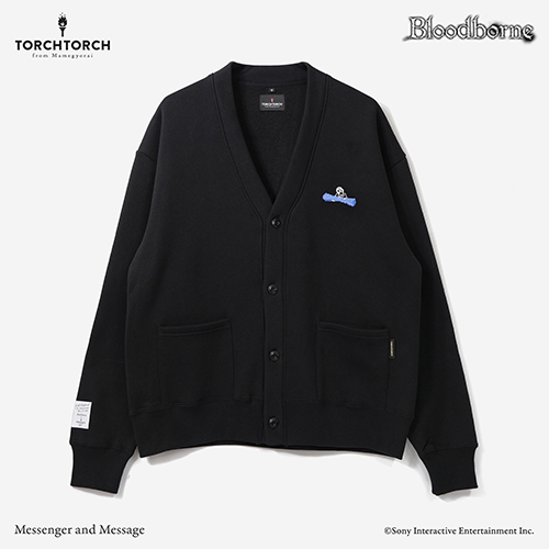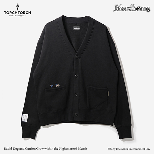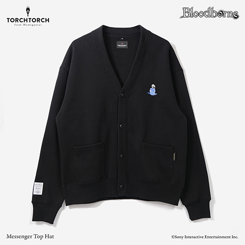 『Bloodborne』とのコラボレーションアイテムに、ワンポイントの刺繍を施したスウェットカーディガンが登場です。ゲーム中でプレイヤーにメッセージを届けてくれる使者のおなじみの姿をクロスステッチで表現し、胸元にあしらいました。