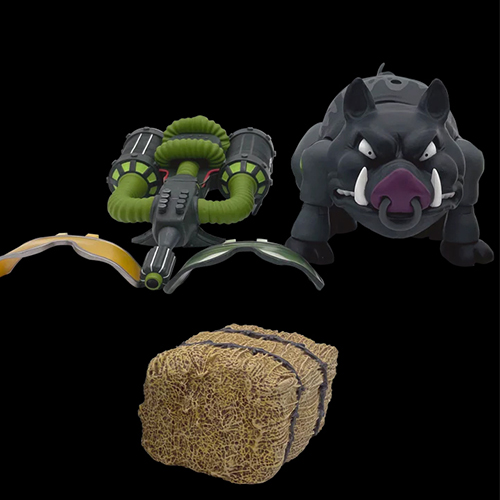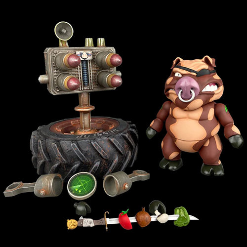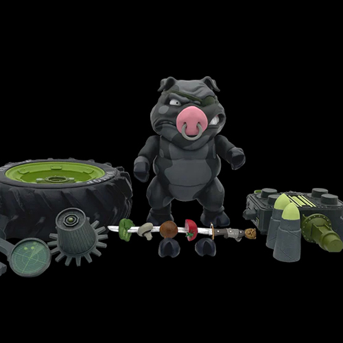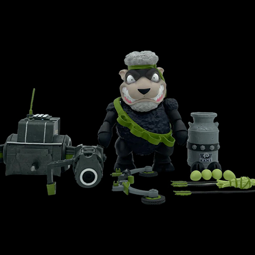 1989年プレイメイツ社からリリースされた「バーンヤード・コマンドーズ」がプレミアムDNAにより現代へ復活です!デザインを務めたのは、近年数々のコラボでも注目を集める「マッドボール」などのデザインを手掛けたレジェンド、ジェームズ・グローマン。R.A.M.S.(武装羊反乱軍)と、P.O.R.K.S.(キラー豚反乱軍)に別れ、バトルを繰り広げるバーンヤード・コマンドーズは、当時アニメ化やミールトイでもリリースされた隠れた名作。こちらは、ロケットの煙の匂い、ほこりの味、そしてバーナードの戦場に響き渡る爆発が大好きな、戦闘力高めなハイ・オンダホグ伍長。