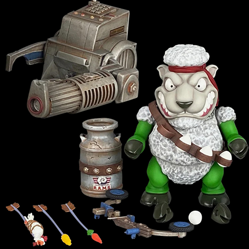 1989年プレイメイツ社からリリースされた「バーンヤード・コマンドーズ」がプレミアムDNAにより現代へ復活です!デザインを務めたのは、近年数々のコラボでも注目を集める「マッドボール」などのデザインを手掛けたレジェンド、ジェームズ・グローマン。R.A.M.S.(武装羊反乱軍)と、P.O.R.K.S.(キラー豚反乱軍)に別れ、バトルを繰り広げるバーンヤード・コマンドーズは、当時アニメ化やミールトイでもリリースされた隠れた名作。こちらは、バーンヤードの戦場でも気高く自信に満ち溢れたマトン少佐。