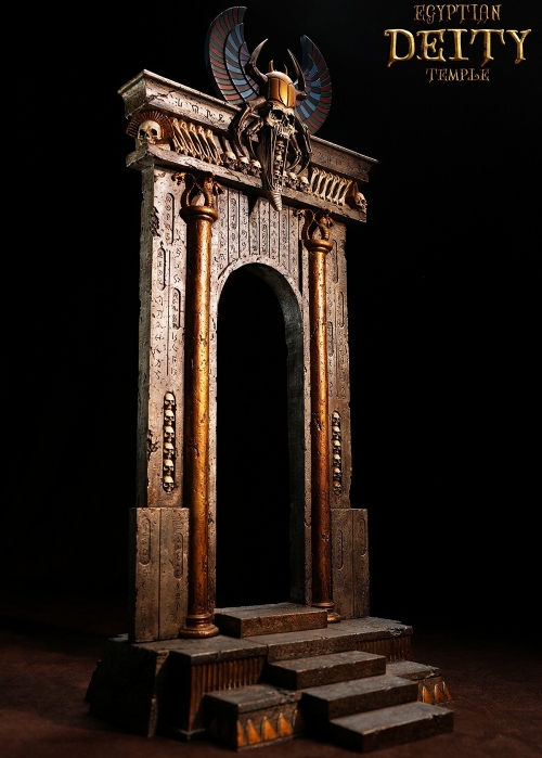 シームレスボディを使用したアクションフィギュアが人気の「TBリーグ」から、新作として「エジプト神殿」が登場です。エジプト神殿の入り口部を、フィギュア用のディスプレイベースとして立体化!ドクロの装飾なども相まって古代神殿の壮大な雰囲気がよく出ています。全高約45センチと大型なので、TBリーグが展開している1/12スケールのフィギュアはもちろん、スケールの合う様々なフィギュアにも最適!ぜひさらにワンランク上のフィギュアディスプレイをご堪能ください!