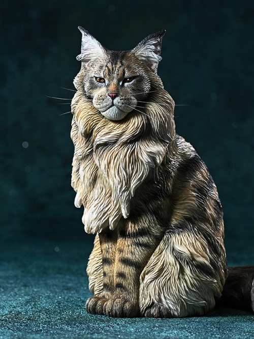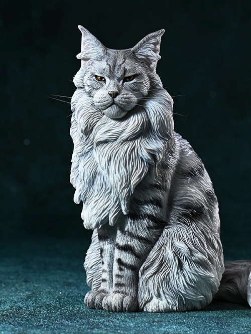 それ単体はもちろんのこと、同じスケールのアクションフィギュアと合わせることで、様々なシチュエーションとディスプレイが可能となる動物フィギュア。JXKスタジオから猫界きっての巨体の持ち主「メインクーン」のバージョン2.0仕様がラインナップです。今回はちょこんと座っている、比較的「動き」の無い姿を全高約12センチで造型。しかしふさふさの毛量、ふてぶてしい表情がなかなかのインパクト。お気に入りの1/6スケールアクションフィギュアと組み合わせてディスプレイを楽しもう!