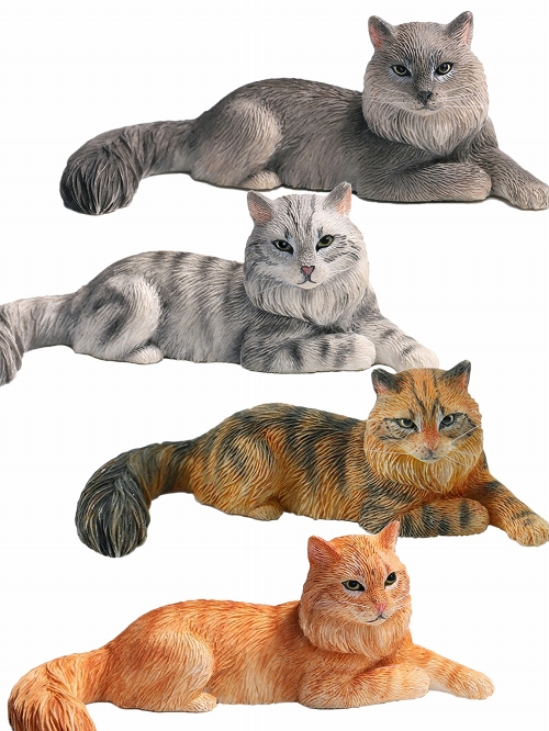 JXKスタジオからネコ「メインクーン」のミニフィギュアが、毛色の異なる4種セットでラインナップです。全長約6センチと小ぶりながら、それぞれの毛色や模様の違いがしっかりと表現されており、その可愛さは小さくなっても全く遜色ありません。他のフィギュアや小物などのアクセサリーと絡めるのはもちろん、ちょっとしたインテリアとしても非常に癒されるアイテムとなっています。