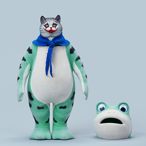 SNSでも話題になった"あの"カエルの着ぐるみ風なアイテム。頭のかぶりものを外せば…なんと!!猫(某悪い道化師風)!!!?いろいろな事が大渋滞しつつも、その可愛さは間違いありません!レジン製スタチューにフロッキー加工がされているので、フサフサ感も味わえます。