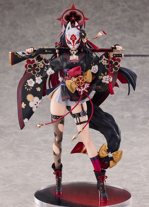 人気ゲーム『ブルーアーカイブ-Blue Archive-』のワカモが、ネオンマックス/東京フィギュアから1/7スケールでフィギュア化です!細かい装飾や華やかなデザインを忠実に再現し、耳の先から尻尾の先まで丁寧に仕上げました。差分パーツとして、お面を外した通常顔の他にハート目のお顔もございます。ワカモの愛を受け入れてくださる先生は是非お迎えください!