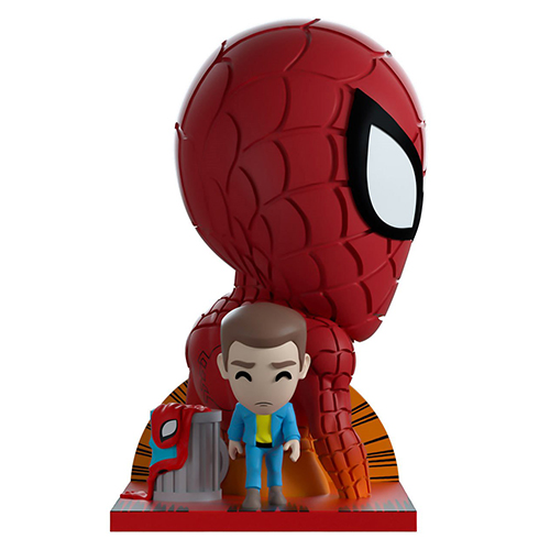 ニッコリ笑顔が特徴的でアメリカを中心に新たなファン層を獲得しつつある注目のメーカー「Youtooz」から、スパイダーマンコミックスの印象的なカバーを再現したシリーズが登場です。こちらは1967年にリリースされた「The Amazing Spider-Man #50」をチョイス。スパイダーマンの衣装を捨ててスパイダーマンをやめることを決意したピーター・パーカーの姿をカバーには描かれていないゴミ箱に捨てられたコスチュームまでディフォルメながらしっかりと表現。ニコニコ目なのに落胆する様子が分かるピーター・パーカーの姿にも注目です。
