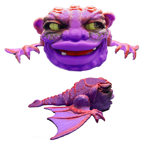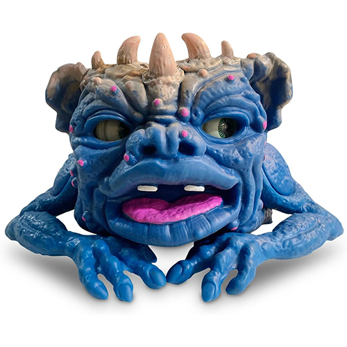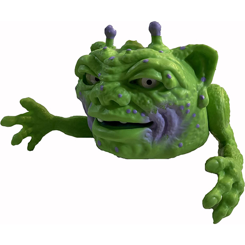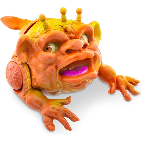 こちらはボグリン界ではぐれボグリンたちを束ねる王ワート。ボグリン界から追放されたが結局は自国を束ね上げ、他の王たちから嫉妬の眼差しを得るという設定のボグリンです。ボグリンたちは、輸送されるクリーチャーの様なケージ型パッケージも特徴的でそのままでも楽しませてくれますが、本体はハンドパペットになっているので、ケージから出してあげて相棒の様に遊んでいただくのもオススメです。ちなみにギョロっとした目も動かす事が出来ちゃいます!