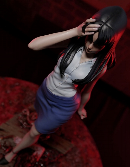 ANIMEGAMIスタジオがスタートさせた「伊藤潤二コレクション」スタチューシリーズ。ホラーファンだけにとどまらず、全世界のマンガファンを虜にする伊藤潤二氏の作品のアニメーションシリーズからの立体化です。記念すべきシリーズ第一弾は「富江」こと川上富江。頭部はロングヘアが美しい「富江」と、髪型が変化し左側面に「富江」が浮き出た「富江」の2種が用意され、差し替えが可能です。足元には、無惨にも切り裂かれた「富江」だったものが。そこから再生して増えていく世界の一端を表現したベース部は必見です(残酷描写ありなので自己責任で)。