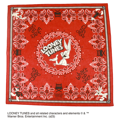 その歴史は古く、なんと1930年代に登場し現在ではワーナー・ブラザース アニメーションを代表するアイコン的キャラクターとなっているルーニー・テューンズがバンダナになりました!こちらは「どうしたもんだろ」でお馴染みのウサギのバッグスバニーを中心としたデザインでダフィーダックや各所に散りばめられたカートゥーン的要素がなんとも可愛いアイテムです。身に着けたり、ハンカチ代わりに使ったりとお気に入りの使い方を見つけてみましょう!
