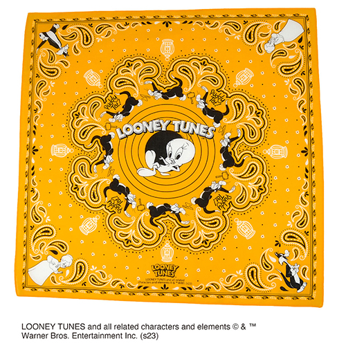 その歴史は古く、なんと1930年代に登場し現在ではワーナー・ブラザース アニメーションを代表するアイコン的キャラクターとなっているルーニー・テューンズがバンダナになりました!こちらは、かわいらしい顔とは裏腹なカナリアのトゥイーティーを中心としたデザインで、性悪ネコたんことシルベスターや飼い主のグラニーまで描かれているファンにはたまらないアイテムです。身に着けたり、ハンカチ代わりに使ったりとお気に入りの使い方を見つけてみましょう!