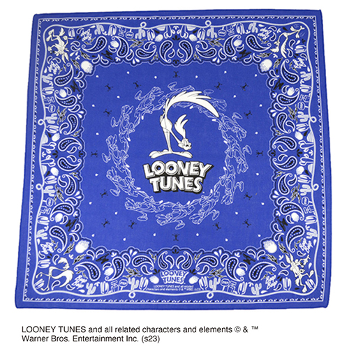 その歴史は古く、なんと1930年代に登場し現在ではワーナー・ブラザース アニメーションを代表するアイコン的キャラクターとなっているルーニー・テューンズがバンダナになりました!こちらは「ミッミッ」という鳴き声でお馴染みの爆速オオミチバシリのロードランナーを中心としたデザインで、なんとしてもロードランナーを捕まえたいワイリー・コヨーテや各所に散りばめられたカートゥーン的要素がなんとも可愛いアイテムです。身に着けたり、ハンカチ代わりに使ったりとお気に入りの使い方を見つけてみましょう!