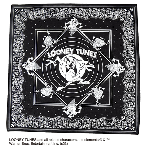 その歴史は古く、なんと1930年代に登場し現在ではワーナー・ブラザース アニメーションを代表するアイコン的キャラクターとなっているルーニー・テューンズがバンダナになりました!こちらは何でも食べちゃうワイルド肉食獣タズことタズマニアンデビルをデザインし、お得意の竜巻的大回転をみせるタズの姿まで描かれていて、なんとも可愛いアイテムです。身に着けたり、ハンカチ代わりに使ったりとお気に入りの使い方を見つけてみましょう!