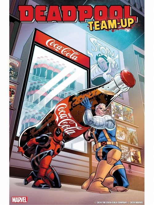 さわやかになる、ひととき。今年のコカ・コーラ大型コラボレーションと言えば、「COCA-COLA x MARVEL The Heroes」!4月からコミックから抜け出したマーベルキャラが画面狭しと大暴れしたCM配信、限定デザインのペットボトルなど販売と、大盛り上がりでした。そして!お次はリーフでもコカ・コーラと大胆クロスオーバー!?こちらは『DEADPOOL TEAM-UP #1』のコカ・コーラ限定カバーです。