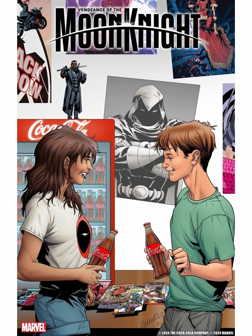さわやかになる、ひととき。今年のコカ・コーラ大型コラボレーションと言えば、「COCA-COLA x MARVEL The Heroes」!4月からコミックから抜け出したマーベルキャラが画面狭しと大暴れしたCM配信、限定デザインのペットボトルなど販売と、大盛り上がりでした。そして!お次はリーフでもコカ・コーラと大胆クロスオーバー!?こちらは『VENGEANCE OF THE MOON KNIGHT #8』のコカ・コーラ限定カバーです。