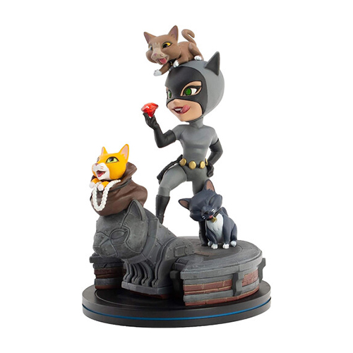 クアンタムメカニクス/QMxがおくる「Qフィグ」シリーズ、手のひらに乗せられるサイズ感、そしてそのデフォルメ感が絶妙!シリーズの火付け役ともなったマイルストーン的アイテムの「キャットウーマン」が再び登場しました!猫3匹と一緒に宝石を盗み出したシーンをジオラマ仕立てになっており、普段セクシーなキャットウーマンがキュート!いつもバットマンが立つガーゴイル像が猫化、「ニャーゴイル」になったコダワリ仕様。とことん猫ちゃんでサイコー!アリガトウ!カ、カ、カ、カワイイ!!
