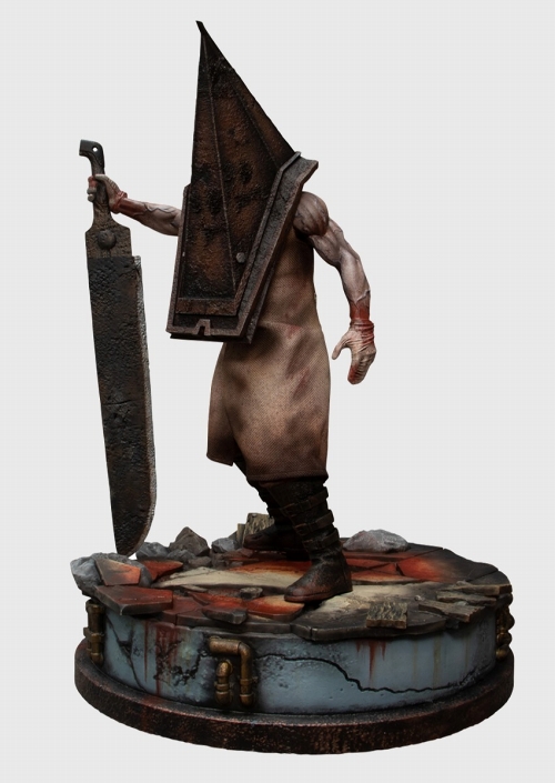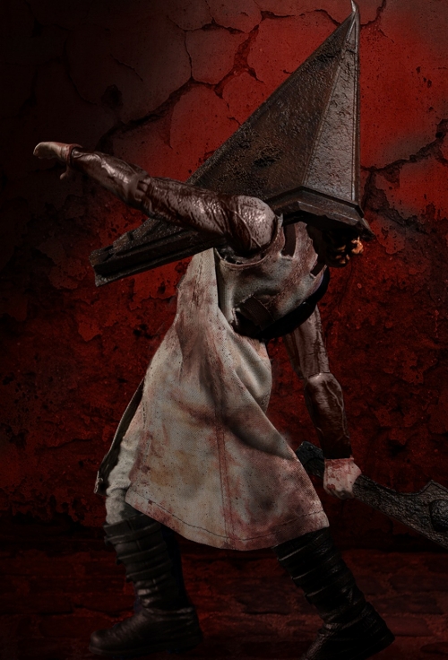 メズコトイズの「ワン12コレクティブ」1/12スケールフィギュアシリーズ新作は、ホラーゲームの金字塔『サイレントヒル2』からレッドピラミッドシング。1/12スケールながら、特徴的な頭部によりサイズは約17センチのボリューム感。ファブリック素材を活かしたコスチュームは塗装によりこびりついた汚れを再現。大鉈と槍が付属するのはもちろんのこと、それらに対応するエフェクトパーツがアグレッシブなアクションの臨場感を演出。まさかのマネキンが付属し、2パックアイテムともいえる仕様はサプライズ感に溢れ、劇中シーンを再現したくなること間違いなし。クリーパーが9匹付属すると共に、メズコトイズによる独自解釈の交換用ヘッドを組み合わせることで映画版のような出で立ちにすることも可能。専用台座はアクションを補助する本来の目的に加え、ロゴが印刷されることでより一層の特別感を醸し出してくれることでしょう。