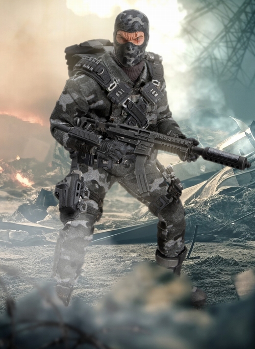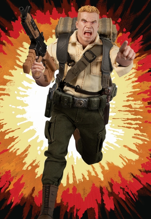 1/12スケールというサイズ感にも関わらず、素材に布を使ったコスチュームなど様々な技術を盛り込み、「アクションフィギュア」にさらなる進化をもたらした「ワン12コレクティブ」。今やメズコトイズを代表するこのシリーズ、『G.I.JOE』からデュークがラインナップです!全高約17センチ、全身32箇所以上の可動素体を使用、頭部は差し替え含め全3種が用意され、様々なシチュエーションに対応。ニヤリ顔がGOOD!サージェントシャツ、カーゴパンツ、コンバットブーツに加え、着脱可能なハーネス、ユーティリティベルト、バックパックと超ミリタリースタイルな装備に。ヘルメット、スカーフ、双眼鏡、トランシーバーなどのアクセサリーも充実!デュークと言えば武器系統の見逃せません。グレネードランチャー、マシンガン、ハンドガン、コンバットナイフ、手榴弾にマズルフラッシュ系エフェクトパーツなどが付属し、さまざまな戦闘シーンの演出が可能!