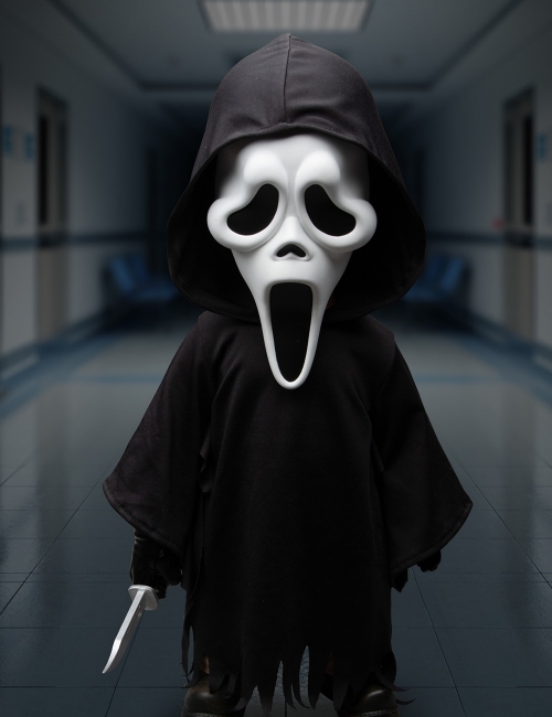 ウェス・クレイヴンによる映画『スクリーム』シリーズや、非対称ホラーサバイバル対戦アクションゲーム『Dead by Daylight』へのコラボ参戦でも知られる、恐怖の象徴であるゴーストフェイス。エドヴァルド・ムンクの芸術作品『叫び The Scream』からインスピレーションを受けてデザインされた白マスクなゴーストフェイスを、メズコがMDSメガスケールでフィギュア化しました!簡単なアクションポーズが可能な2~3頭身ボディ、顔はなかなかの「リアル」テイストのシリーズにより、布製ローブのゴーストフェイスは怖さ増し増し。ハンティングナイフが付属し、右手に持たせることが可能です!
