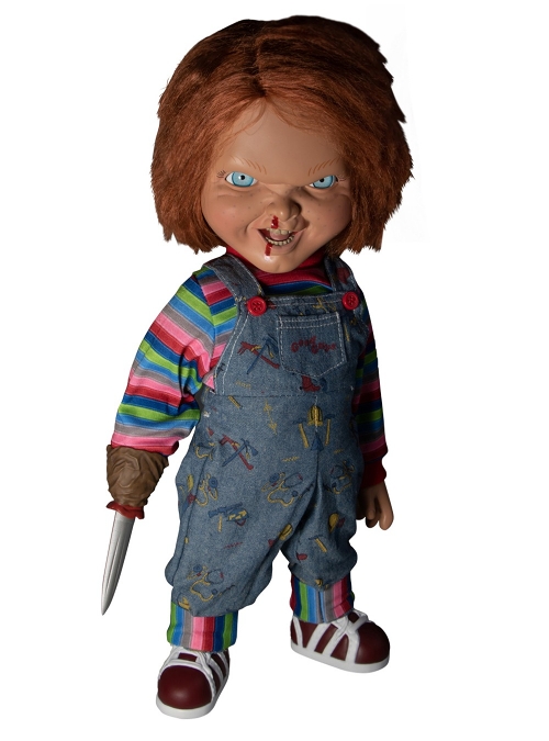 メズコトイズから数多くのフィギュアがリリースされている、ホラー映画『チャイルドプレイ』シリーズ!映画『チャイルドプレイ』にて殺人鬼チャールズ・リー・レイの魂が憑依し、凶悪顔となったグッドガイ人形が15インチサイズでトーキングフィギュア化!グッドガイ人形らしい植毛ヘッド、全高38センチの大型ボディ、リアルな質感を味わえる布製コスチューム、そして「My name is Chucky」などのセリフが内蔵されたトーキングギミックと、見どころ満載の「チャッキー」フィギュア!