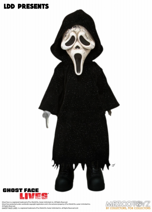 メズコトイズ「リビングデッドドールズ(LDD)」シリーズから、ウェス・クレイヴンによる映画『スクリーム』シリーズや、非対称ホラーサバイバル対戦アクションゲーム『Dead by Daylight』へのコラボ参戦でも知られる、恐怖の象徴であるゴーストフェイスが限定版としてカムバック!エドヴァルド・ムンクの芸術作品『叫び The Scream』からインスピレーションを受けてデザインされたマスク部が、グロウ&ブラッディ仕様となって、おどろおどろしい雰囲気がマシマシに!血塗られたナイフもアクセサリーとして付属しています!