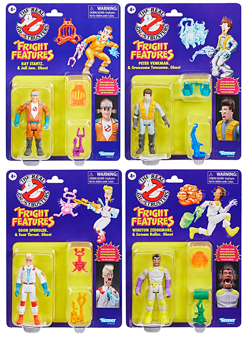 1986年にアメリカでアニメ放送された「リアル・ゴーストバスターズ」。日本では「アニメ ゴーストバスターズ」名義でVHSのみでの展開でしたが、2016年リリースの「ゴーストバスターズ 劇場公開記念コレクタブル・エディション」にて5話分が念願のBlu-ray化されたアニメ版ゴーストバスターズ。1987年にリリースされたフィギュア「フライト・フューチャーズ」の「レイ・スタンツ & ジェイル・ジョー・ゴースト」、「ピーター・ベンクマン & グルーサム・トゥーサム・ゴースト」、「イゴン・スペングラー & ソアー・スローと・ゴースト」、「ウィンストン・ゼドモア & スクリーム・ローラー・ゴースト」の4種が現代に復活!ゴーストバスターズたちの驚愕のビックリしちゃったギミックが最高過ぎる傑作アイテム。
