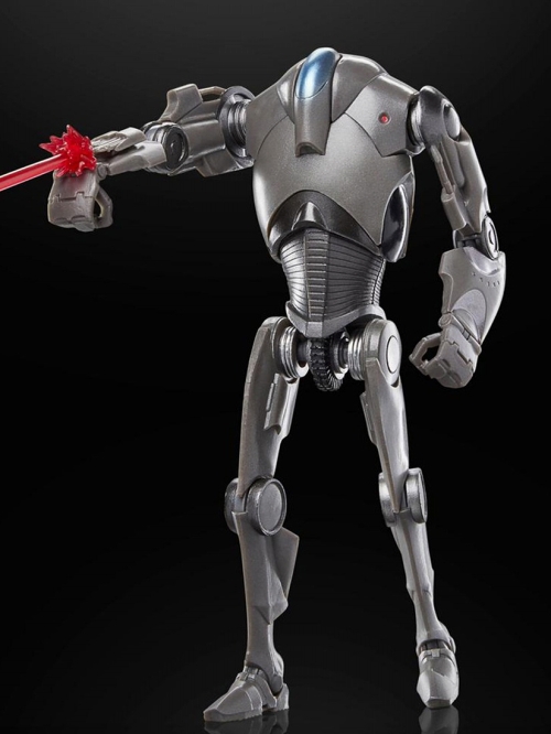 エピソード2「クローンの攻撃」に登場したスーパー・バトル・ドロイドを、全高約15センチでフィギュア化。約25箇所の可動ポイントを擁し、細部まで再現。右腕に取り付けられるレーザーのエフェクトパーツが付属。