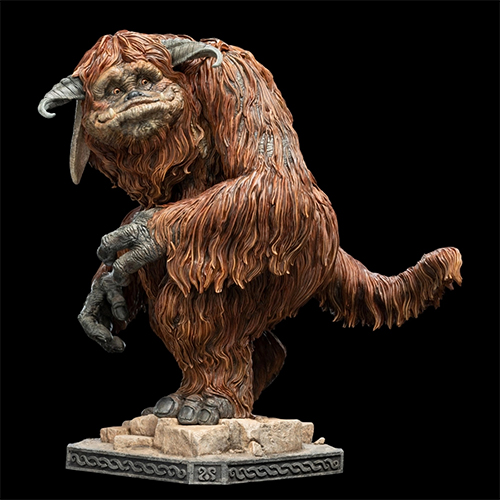 セサミストリートなどで知られるジム・ヘンソンが監督を務め、製作総指揮にジョージ・ルーカス、そして主演にデヴィッド・ボウイ、ジェニファー・コネリーと錚々たるメンバーで製作された1986年の映画『ラビリンス/魔王の迷宮』より、主人公サラに助けられ、旅を共にする仲間の一人ルドが1/6スケールのスタチューとなって登場です。240cmにもなる大きなモンスターですが、おとなしく優しい性格がにじみ出ている表情で愛らしく表現されています。そして皮膚の質感や全身を覆う毛の流れが伝わる細やかな造形は、『ロード・オブ・ザ・リング』をはじめ、数々の映画作品で特殊メイクやプロップ製作などを手がけてきたウェタワークショップならでは。