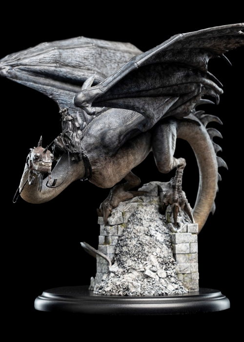 映画監督ピーター・ジャクソンらにより設立された「WETA」。『ロード・オブ・ザ・リング』をはじめ、数々の映画作品で特殊メイクやプロップ製作などを手がけてきたウェタワークショップが、直々に作り上げた本格派スタチューの新作です。てのひらに乗せることが出来るくらいのサイズで、手軽に造型美が楽しめるミニスタチューシリーズに、ウィッチキングが乗るフェルビーストが登場!指輪の幽鬼ナズグルを統べる首領ウィッチキングが騎乗するフェルビーストを、全高約19センチで再現しました。ミニとは言え、製作したのはウェタワークショップ。今にも飛び立ちそうな迫力のシチュエーションに、こだわりのディテールと塗装と、ファンも納得のハイクオリティです。