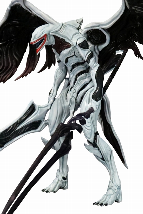 キャラクターデザインからフィギュア原型まで、幅広く活動する造形作家「Yoshi.」氏。その独創的かつ神秘的なアレンジと、細部までこだわり抜いた緻密な造形は高い評価を得ています。そのYoshi.氏が今回コラボレーションするのはCCPの『エヴァンゲリオン』スタチューシリーズです。通称「旧劇場版」、『新世紀エヴァンゲリオン劇場版』における量産機らしいシルエットをもとにしつつ、巨大な翼に追加されたディテールなど、各所に氏ならではの禍々しさと美しさを感じさせるアレンジが加えられています。美術品を思わせるような美しさ、重厚さを全面に出した彩色の仕上がり。白いボディに青みのあるシャドウ表現を追加し、神秘的で荘厳な雰囲気のある演出も見所です。翼の開閉、頭部の開閉、諸刃型の剣&ロンギヌスの槍を持った腕への差し替えパーツが付属し、お好みでディスプレイが可能です。