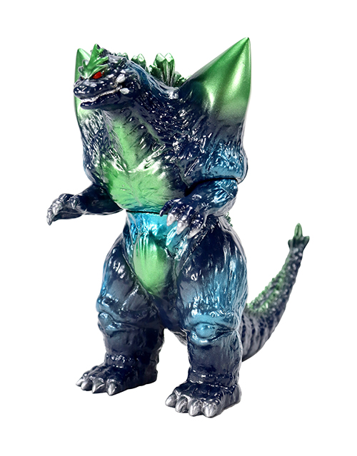 「古そうで新しい、だけど少し古臭いソフビ怪獣シリーズ」をコンセプトに、数々の怪獣をデフォルメデザイン立体化した CCPミドルサイズシリーズ!全高約14センチほどで、手のひらに収まる集めやすいサイズ。ノスタルジーさを感じさせてくれる「昭和レトロ」なデフォルメアレンジの風合いは、ソフビ好き&怪獣好きにはたまらないアイテムです。こちらは「スペースゴジラ」のメタリックグリーンVer.。少し暗い紺色のような、通称「ゴジラブルー」と呼ばれる色を意識した成形色に、鮮やかなメタリックグリーン・メタリックブルーを吹き付けられたレトロ感あふれるカラーリング。