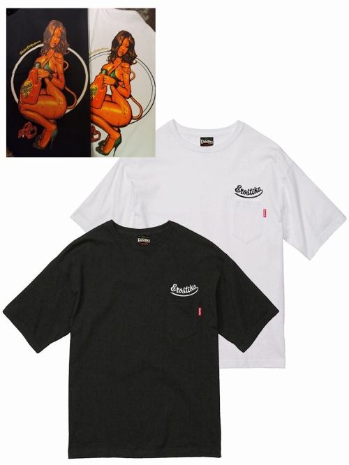 その唯一無二で魅力的なアートを武器に、日本をはじめ世界でも活躍するアーティスト、ロッキンジェリービーン氏。そのRJB氏がデザインを手掛けるブランド「Erostika(エロスティカ)」から、胸ポケットが付いたビッグシルエットのTシャツが登場です。バックプリントにはSantacruz/サンタクルーズとのコラボレーションで使用されるなど、圧倒的なインパクトを放つアートワーク「Devil's House Wives」を採用。