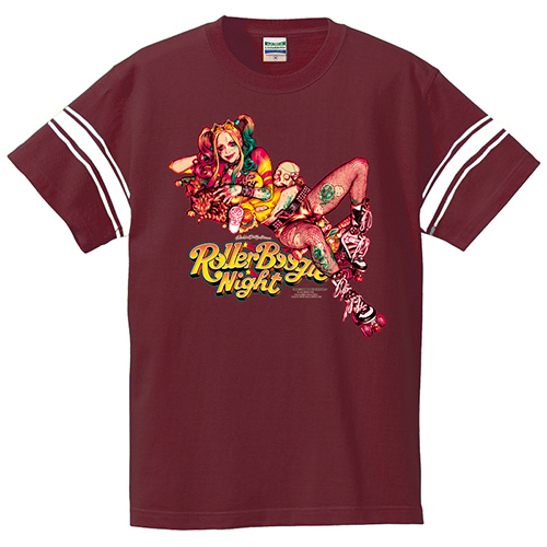 エロスティカ/ “ROLLER BOOGIE NIGHT” ラインTシャツ バーガンディ サイズXL