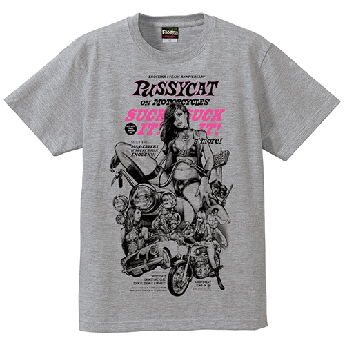 エロスティカ/ “PUSSYCAT ON MOTORCYCLES” Tシャツ アッシュグレイ サイズXL
