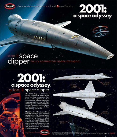 メビウスモデルが、ファンの熱いリクエストに応え、完全新設計、完全新金型によりキット化された、映画『2001年宇宙の旅』に登場する「スペースクリッパー」が再び。美しく青きドナウの優雅な旋律に乗って、静かに宇宙ステーションに向けて進む純白のシャトル。スタンリー・キューブリック監督作『2001年宇宙の旅』のワンシーンはアポロでの月面着陸の1年前に公開されたとは思えない、宇宙空間表現のクオリティの高さとその画期的な演出は映画史に残る名シーン。研ぎ澄まされた感性と考証に裏打ちされた設計により、そのプロポーションやディテールは、プロップを完全再現したと言えるスペースクリッパー オリオン号のプラモデルキットになっています。