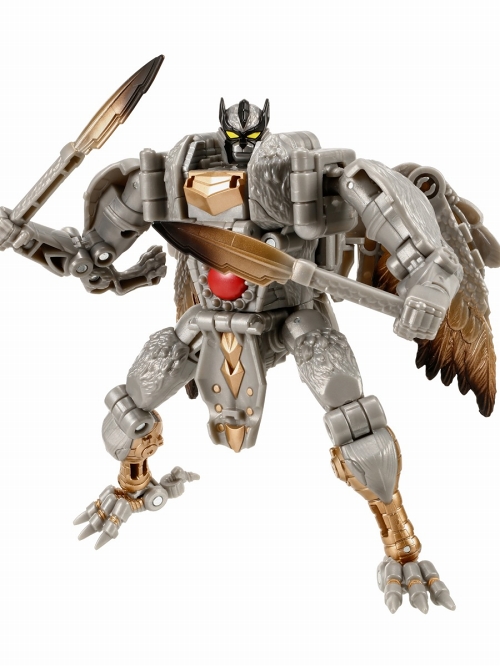 『トランスフォーマー』世界の人気キャラクターが同じ世界に集結し新たな世代を創り出す「トランスフォーマ―レガシー」。『トランスフォーマー』40周年を記念して、全ユニバースから人気のキャラクターが結集、展開する新シリーズ【トランスフォーマーレガシー ユナイテッド】。ビーストウォーズメタルスユニバースから登場のマクシマルのフューザー戦士シルバーボルトはオオカミとワシが融合したビーストモードからロボットモードへと変形します。付属のフェザーミサイルは、ボルトサーベルとして手に持たせることができます。