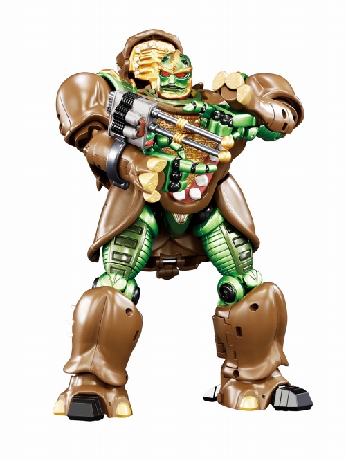 トランスフォーマーの最高峰ブランドであるマスターピースシリーズ。TVCGアニメ『ビーストウォーズ 超生命体トランスフォーマー』で活躍したライノックスを劇中設定で忠実に立体化。ビーストモードの「サイ」からロボットに完全変型します。シリーズキャラクターとサイズ感を合わせており、既に発売中のビーストウォーズキャラクター達と並べて、劇中の活躍シーンを再現できます。ガトリングハンマーは2丁付属し、劇中で印象的な両手撃ちのポーズもとることが可能。ガトリングハンマーのうち1丁は、アニメ当時の玩具同様にビーストモード内部に格納することができます。また、劇中でコンボイのスパークを探すために使用したデヴァイスが付属するほか、スパーク、叫びフェイスが付属。コンボイ(ビーストウォーズ)用のアダプターを使用することで、ビーストモードのライノックスに跨るシーンを再現できます。