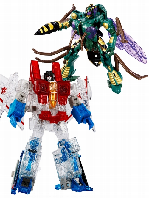 BWVSシリーズのボーナスステージとして、ジェット機に変形するデストロン航空参謀「スタースクリーム」がビーストウォーズ第21話に登場した亡霊バージョンの「ゴーストスタースクリーム」として定番の特別クリア成型カラーで登場。対決するのは、その「ゴーストスタースクリーム」に憑依された「ワスピーター」を「ホーンテッドワスピーター」として憑依状態をイメージしたダークカラーで再現、頭部のデストロンエンブレムを再現する等、こだわりのプレミアムフィニッシュ仕上げでアニメ本編のイメージを再現します。 クローズドのボックスパッケージの中には当時の対決セット箱をイメージさせるリバーシブルインナーシートがセットされ、キャラクターカード2枚が付属します。