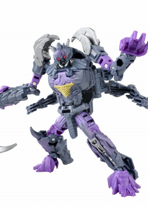 『トランスフォーマー』世界の人気キャラクターが同じ世界に集結し新たな世代を創り出す「トランスフォーマ―レガシー」。『トランスフォーマー』40周年を記念して、全ユニバースから人気のキャラクターが結集、展開する新シリーズ【トランスフォーマーレガシー ユナイテッド】。ユニクロンに取り込まれたメガトロンがパワーアップした姿で、ロボットモードからSFジェット戦闘機モードに変形します。付属の武器を装着装備する事ができます。