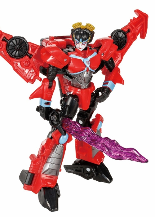 『トランスフォーマー』世界の人気キャラクターが同じ世界に集結し新たな世代を創り出す「トランスフォーマ―レガシー」。『トランスフォーマー』40周年を記念して、全ユニバースから人気のキャラクターが結集、展開する新シリーズ【トランスフォーマーレガシー ユナイテッド】。「ウインドブレード」は、サイバーバースユニバースから来たオートボットの剣士でロボットからジェット戦闘機に変形します。この世界でも、彼女のそのシティスピーカーとしての特殊能力を発揮する事がありそうです。武器にもなる頭部のかんざしやストームフォールソードが付属し装着装備できます。