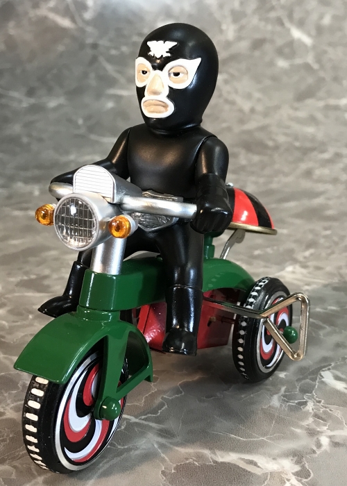『仮面ライダー』に登場するキャラクターたちが、懐かしくレトロなゼンマイ式三輪車に乗ったソフビフィギュアで登場!その第1弾として、「蜘蛛男」がリリースです。デフォルメもキュートなフィギュアながらも、そのキャラクターの特徴を手袋やブーツなど細部の造型で表現されています。三輪車はゼンマイを回し走行が可能。車輪も可動。おりん部分がチリンチリンと音が鳴ります。前輪の角度を変えることにより、進行方向を変更できます。三輪車の本体、ホイールやおりん等もそれぞれのキャラクター用のカラーリング、そしてカウルやマフラーにライトパーツなど、細かい造形がファンを魅了します。